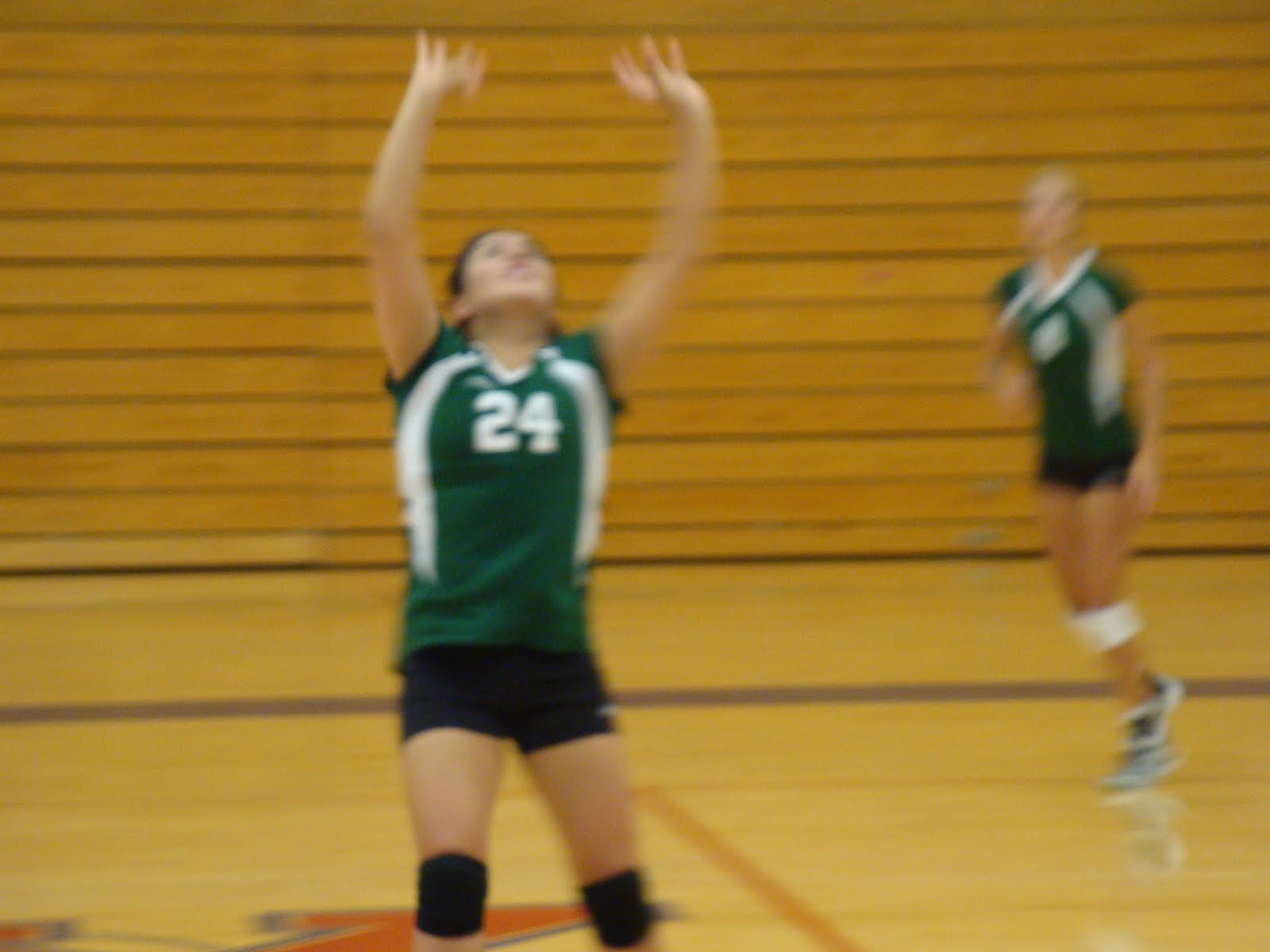 Okay here is the deal with Annie. In the first tournament of the season she broke her wrist, at least the Dr. was somewhat sure that she had. Annie was so upset over it we ended up getting a second opinion from a sports medicine Dr. He said whether it was broken or she had a sprain having it in a cast was a good thing for a couple of weeks. He said to come back in 2 weeks he'd take the cast off and re X ray it and he'd be able to tell if it was broken or not. After a long long 2 weeks we went back. He wasn't positive but he felt like it was broken. We ended up getting an MRI x ray of her wrist. It showed that where both Dr.'s had thought there was a break there wasn't (yay!) but it also showed that in a different place there was a break. If you can call a fracture a good fracture this was one. It is in a place that heals fast and can be cast up to 3 months after the break and heal properly. So what did Annie decide to do? You guessed it. She is back to playing volleyball with a broken wrist and will get it cast at the end of the season. The cast has been off for two weeks and she has been back to playing for those two weeks. So far so good. We hope all will go well with the rest of the season for her. Below is Annie having her name and number called out at the start of the game.